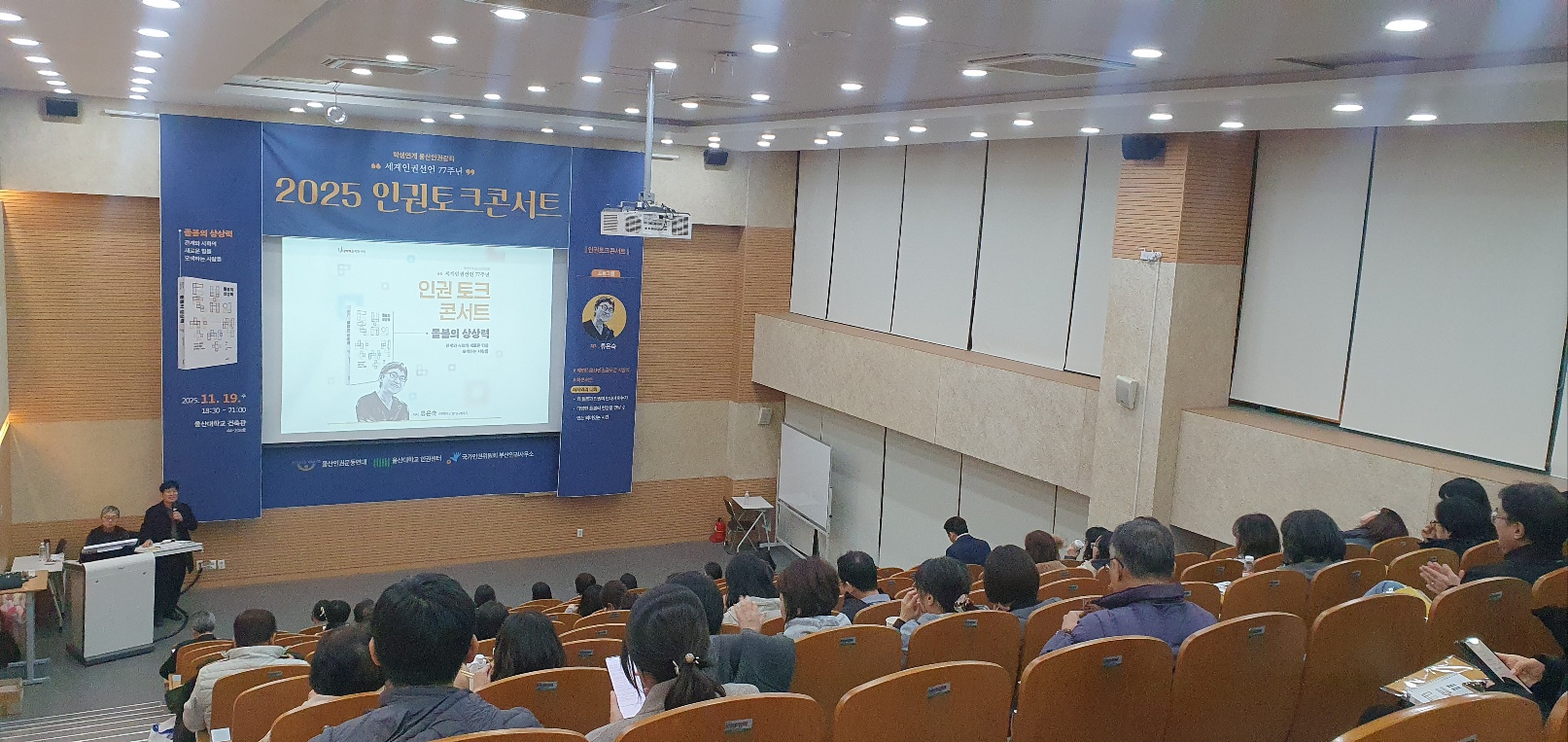 제 9회 대학생인권공모전 수상자와 "돌봄의 상상력" 저자 류은숙 작가님을 모시고 인권토크콘서트를 개최하였습니다 - 일시: 2025년 11월 19일 (수) 18:30 - 장소: 건축관 (44-208)
