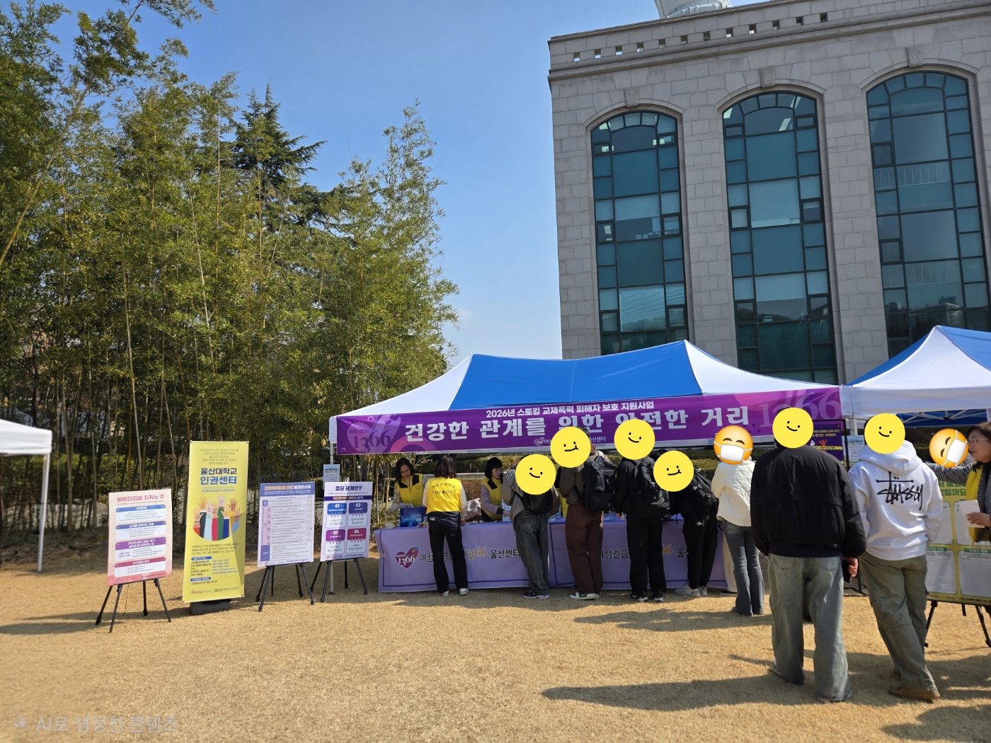 인권센터는 여성긴급전화 1366울산센터, 울산디지털성범죄피해자지원센터, 울산해바라기센터 와 2026.3.10. ~ 3.12. 중앙정원에서 「건강한 관계를 위한 안전한 거리」, 「디지털성폭력 탈출」을 슬로건으로 폭력예방 캠페인을 진행하였습니다.